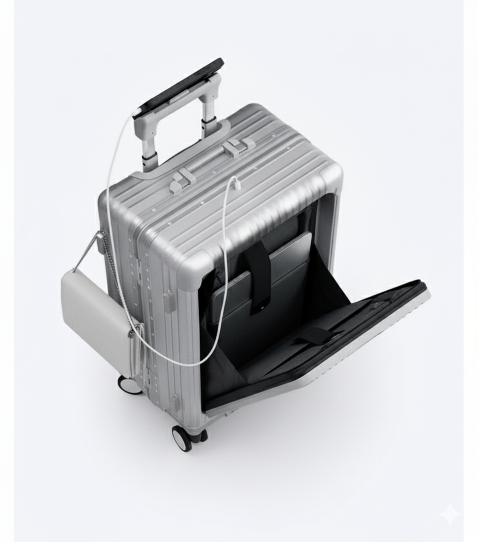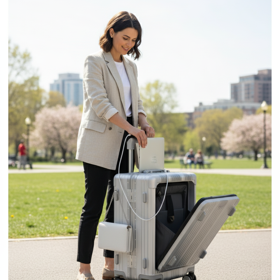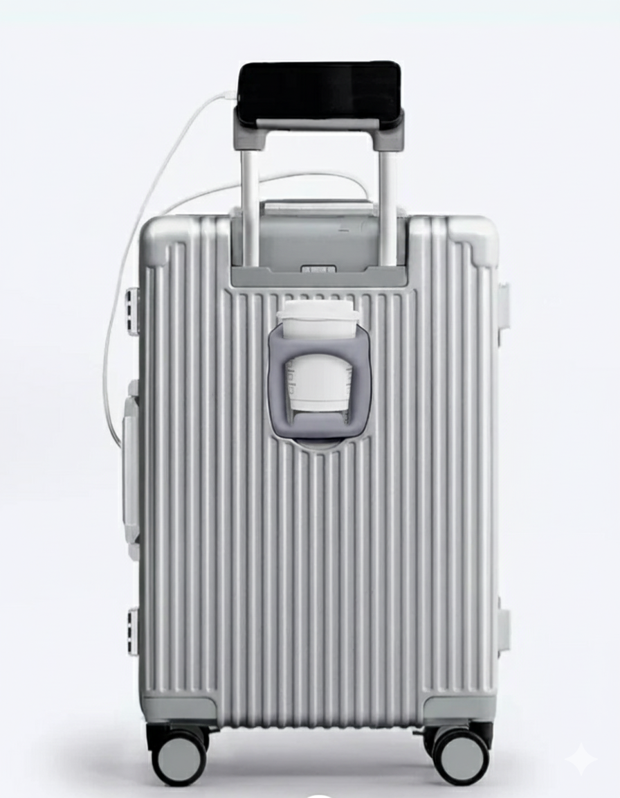 Equipped with a built-in USB-C charging port and an integrated cup holder, this carry-on keeps your essentials powered and within reach throughout your journey.